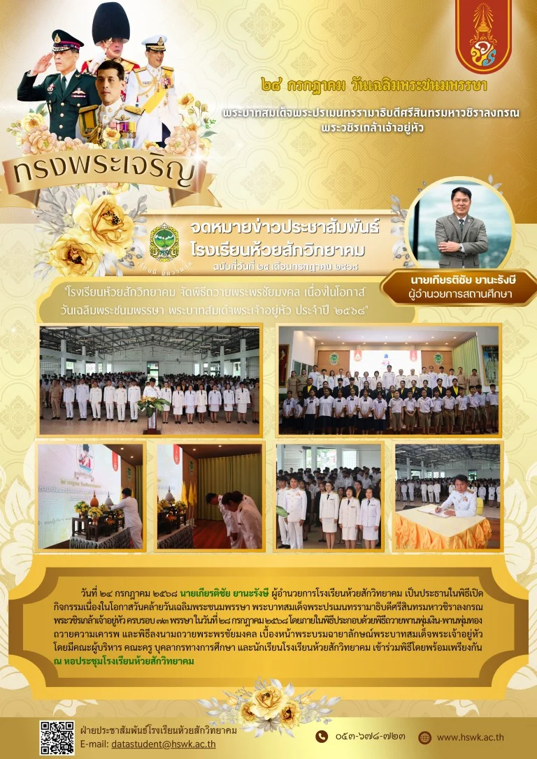 กิจกรรมโรงเรียน พิธีถวายพระพรชัยมงคล เนื่องในโอกาส วันเฉลิมพระชนมพรรษา พระบาทสมเด็จพระเจ้าอยู่หัว ประจำปี 256824/07/202512/08/2025