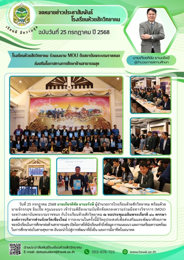 กิจกรรมโรงเรียน ร่วมลงนาม MOU กับ สถาบันพระบรมราชชนก ส่งเสริมโอกาสทางการศึกษาด้านสาธารณสุข25/07/202512/08/2025