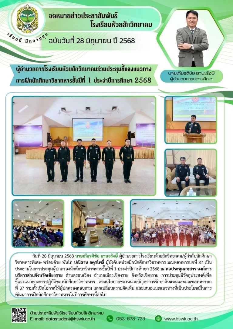 กิจกรรมโรงเรียน ผู้อำนวยการโรงเรียนร่วมประชุมชี้แจงแนวทางการฝึกนักศึกษาวิชาทหารชั้นปีที่ 1 ประจำปีการศึกษา 256828/06/202512/08/2025