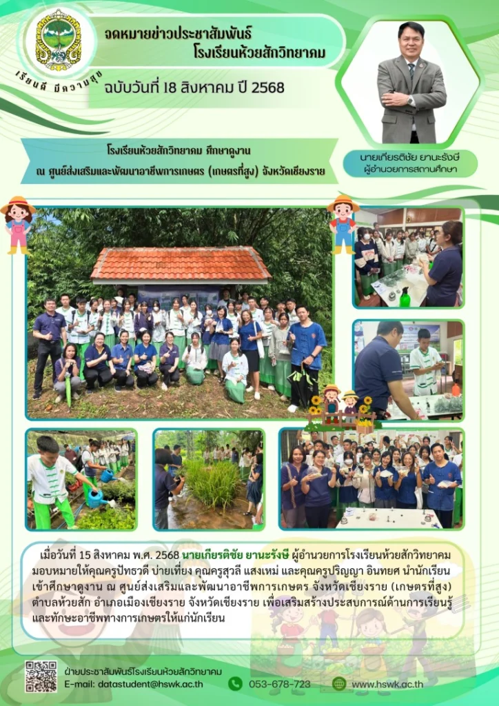 กิจกรรมโรงเรียน นักเรียนเข้าร่วมการแข่งขันโครงงานวิทยาศาสตร์ภาคเหนือ ณ มหาวิทยาลัยเชียงใหม่18/08/202518/08/2025